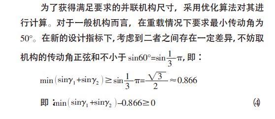 在機(jī)構(gòu)設(shè)計(jì)中,一般通過限定機(jī)構(gòu)的最小傳動(dòng)角來確保機(jī)構(gòu)具有良好的傳力特性,即要求: