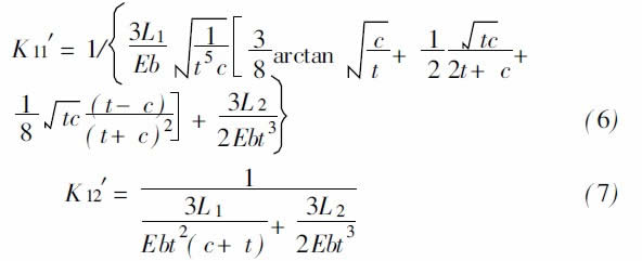 1.1 倒圓角直梁型和橢圓直梁復(fù)合型柔性鉸鏈剛度計(jì)算公式