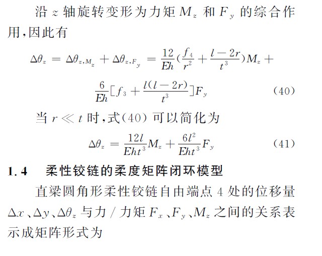 本文建立的直梁圓角形柔性鉸鏈柔度矩陣閉環(huán)解析模型,可為柔性鉸鏈以及柔性體機構的設計優(yōu)化提供理論依據。