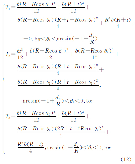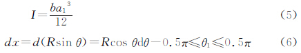式中,α 是轉(zhuǎn)角;M 是轉(zhuǎn)矩;E 是材料彈性模量;I 是鉸鏈截面對z 軸的慣性矩。取出如圖2的微元進行積分,可得鉸鏈轉(zhuǎn)角公式為:.jpg)