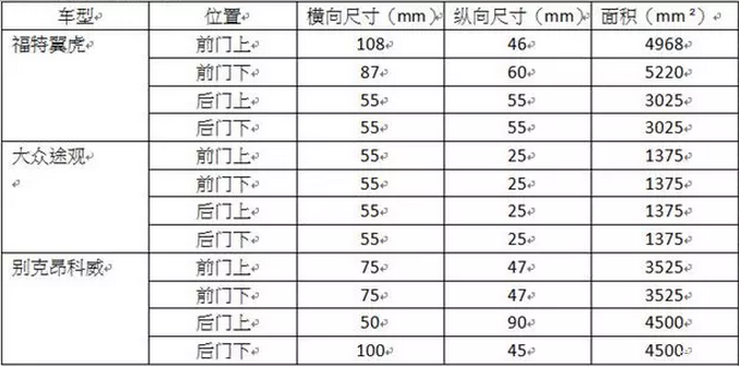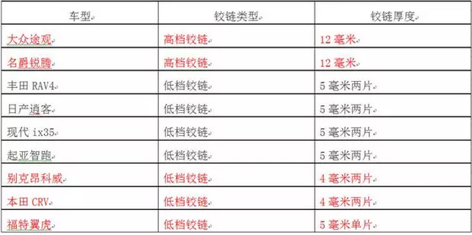 該報(bào)道內(nèi)列出,20萬(wàn)元左右SUV車(chē)門(mén)鉸鏈對(duì)比表