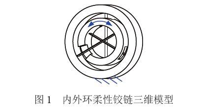 內(nèi)外環(huán)柔性鉸鏈(Inner and outer ring flexural pivots, IORFP)在剛度、精度和溫漂等方面特性優(yōu) 良,三維模型如圖4。以純扭矩作用下的內(nèi)外環(huán)柔性鉸鏈為正剛度子系統(tǒng),通過研究相匹配的負(fù)剛度 模塊,給出零剛度柔性鉸鏈的構(gòu)造方法,最終,完成零剛度柔性鉸鏈的設(shè)計、樣件加工和測試。