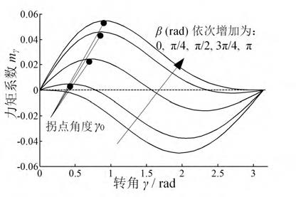 (2) γ∈[0, β]時,轉(zhuǎn)角γ 增大,mγ從零先增大, 至拐點角度γ0處取最大值mγmax,后又逐漸減小。