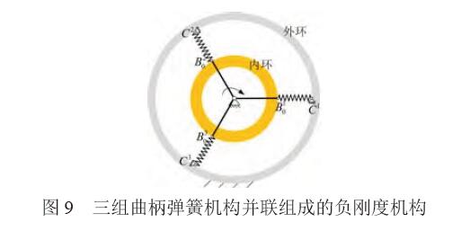 2.1 正負(fù)剛度的匹配如圖9所示,n(n≥2)組并聯(lián)的曲柄彈簧機(jī)構(gòu)圓 周均布,構(gòu)成與內(nèi)外環(huán)柔性鉸鏈匹配的負(fù)剛度機(jī)構(gòu)。