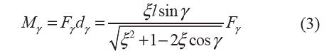 圖5 中,取力矩Mγ順時針為正,曲柄轉(zhuǎn)角γ逆時針為正,下面建模分析力矩載荷Mγ與曲柄轉(zhuǎn)角γ 之間的關(guān)系,建模過程是有量綱的。